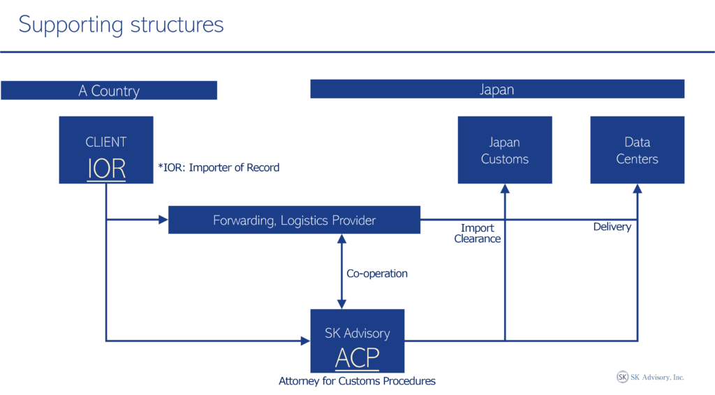 The increasing demand for importing and delivering goods to data centers in Japan is largely driven by the tech and AI boom. Often, clients who are non-resident companies seek to deliver goods—either their own or their end-clients’—to these data centers without making a sale. To facilitate this, the clients need to handle the import process into Japan on their own.